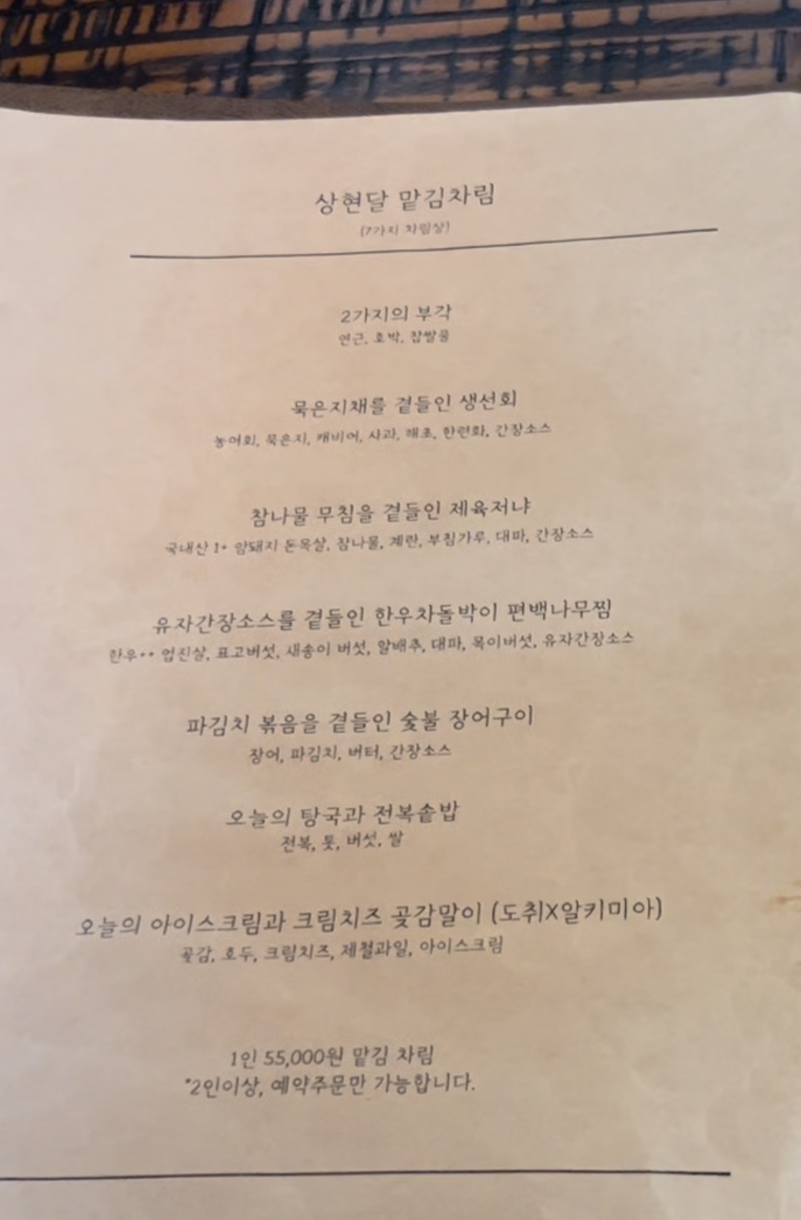 1.예약금(재료수급예약금) : 140,000원(7명 X 20,000원)