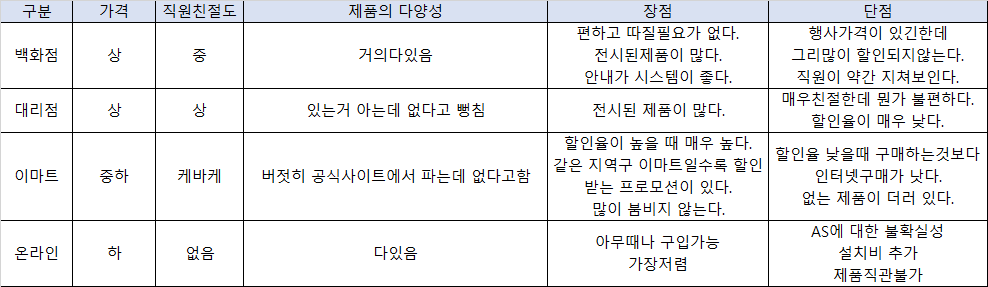대략 구매한 상품의 총가격을 계산해보니 인터넷 최저가 보다 10~20만원 비쌌다.